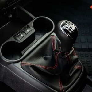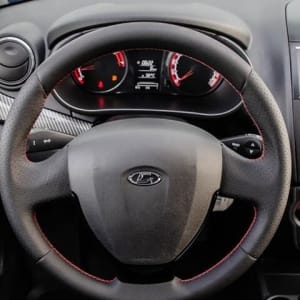 • Отделка руля, чехла КПП кожей с красной отстрочкой