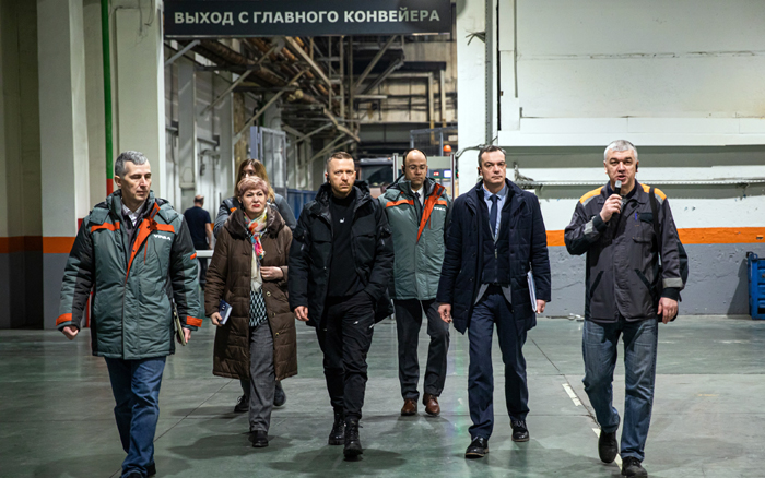 Знакомство Ильи Разбаша с автозаводом «Урал» началось с цеха главный конвейер. Опытный образец электрического грузового автомобиля «Урал» с гибридной силовой установкой колесной формулы 4х2 гостю презентовала руководитель проекта Ольга Рябова.