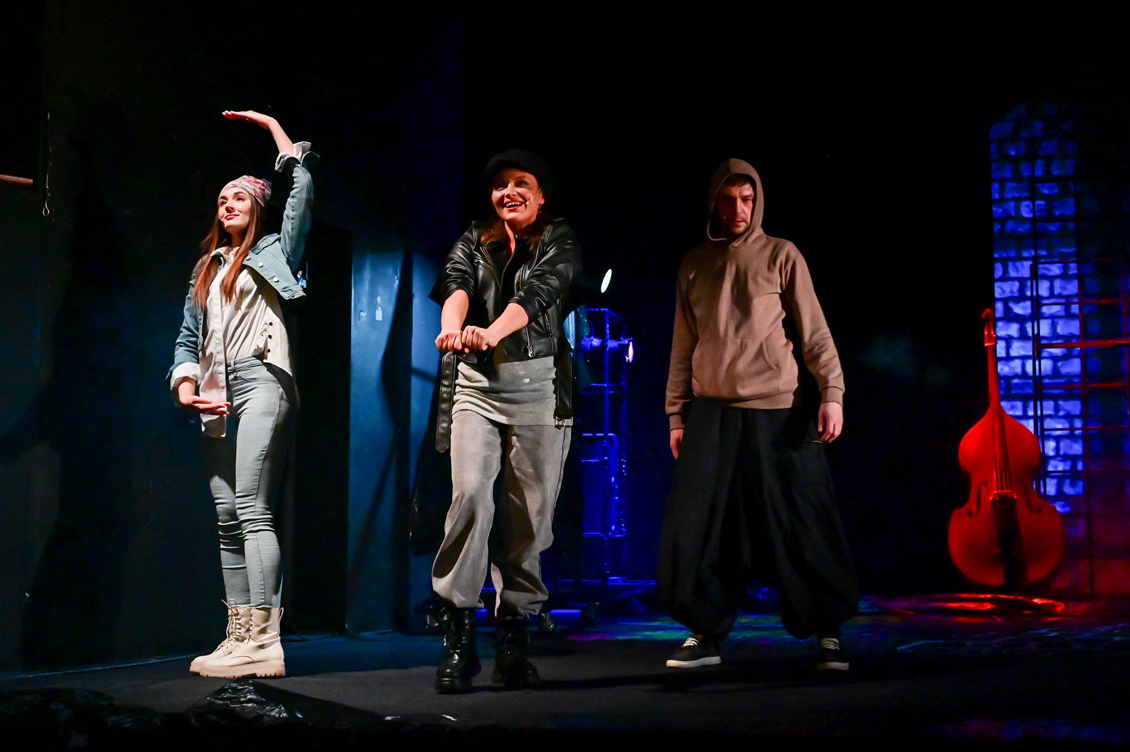 Стилистика спектакля в хорошем смысле неровная. В начале, когда Раскольников обдумывает дилемму о твари дрожащей и имеющем право, его монологи очень похожи на шекспировские — нет-нет да проглянет сквозь штаны-афгани, черное пальто и худи (это, безусловно, дань рэперской моде) то Гамлет, то Макбет. В сценах с Соней мы слышим нежный верлибр. А вот к финалу — да, это будто начитка то ли Басты, то ли Хаски, то ли тех исполнителей, коих нынче помечают сноской «иноагент»... Сейчас в моде «безыдейный» кальянный рэп, смесь девочковых стихов с попсой, но вот его кашеобразного мурлыканья в «Игре в...» вы точно не услышите — только рубящие воздух строчки протеста и признания, только хардкор, только на разрыв аорты!