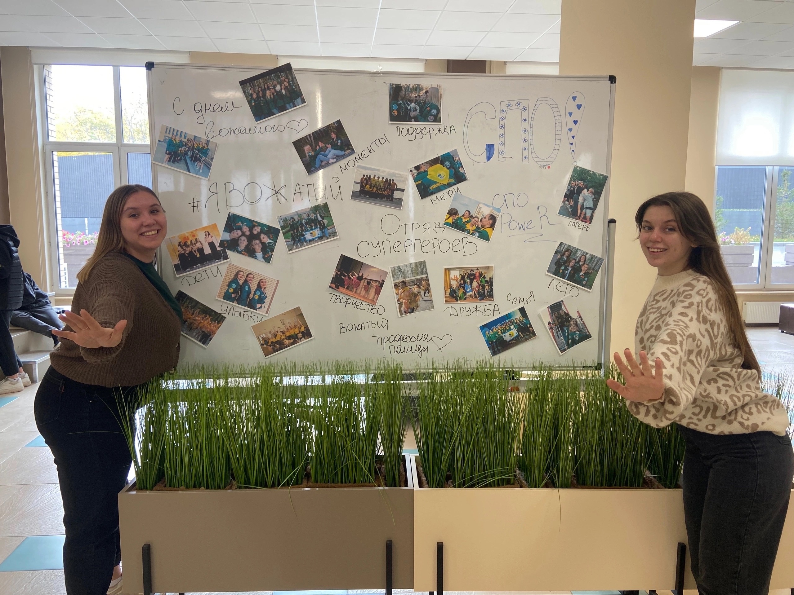 В холе первого этажа Южно-Уральского технологического университета 10 октября всех студентов ждала небольшая выставка с фотографиями бойцов Студенческого педагогического отряда «PoweR», посвященная Международному Дню вожатого.