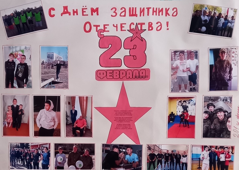 В честь праздника студенческие группы выпустили стенгазеты, посвященные Дню защитника Отечества. В них обучающиеся рассказали о российской армии, истории вооружённых сил России, их назначении, символике, боевой технике. Особенно трогательно смотрелась рубрика «Наши папы-герои», в ней ребята рассказали о своих отцах.