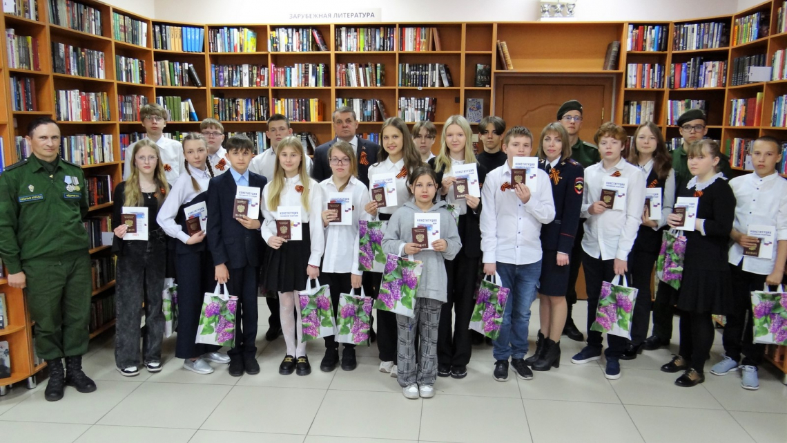 В Библиотеке мира при поддержке депутатов Законодательного Собрания Челябинской области Павла Шиляева и Дмитрия Мельникова прошло торжественное вручение паспортов юным жителям города, приуроченное к празднованию Дня Великой Победы.