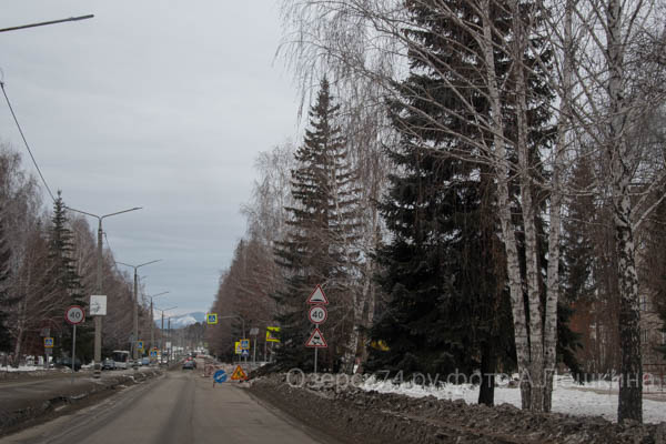 Проезжаем улицу Менделеева с отвалами на обочине.