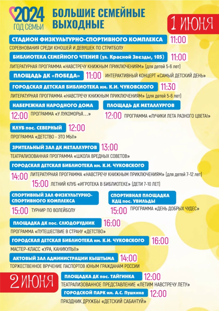 Кыштымцев приглашают на «Большие семейные выходные»