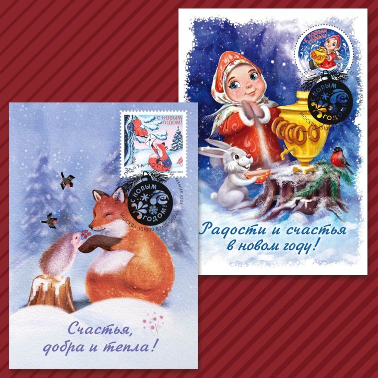 Лисичка-почтальон и Снегурочка с самоваром: новогодние марки от Почты России