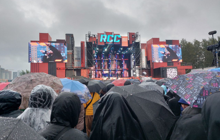 Несмотря на непрекращающийся дождь, на площадке собралось огромное количество зрителей