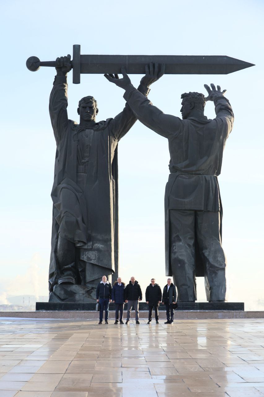 Свое знакомство с городом металлургов Артем Владимирович начал с другого знакового места – монумента «Тыл – фронту». Глава Магнитогорска Сергей Бердников рассказал гостю, что именно здесь проходят все масштабные городские праздники, которые собирают по 100 тысяч горожан.