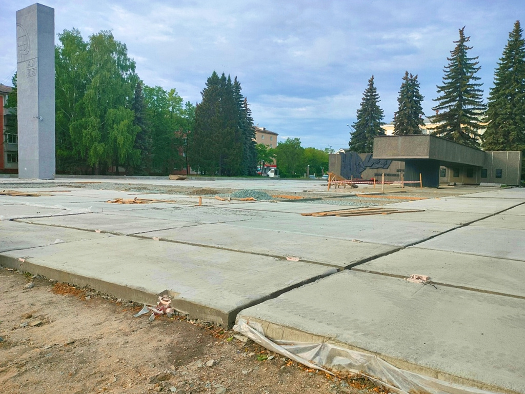 Площадь у "Вечного огня" постепенно приобретает обновлённый вид. Значительная часть плит уже заменена.