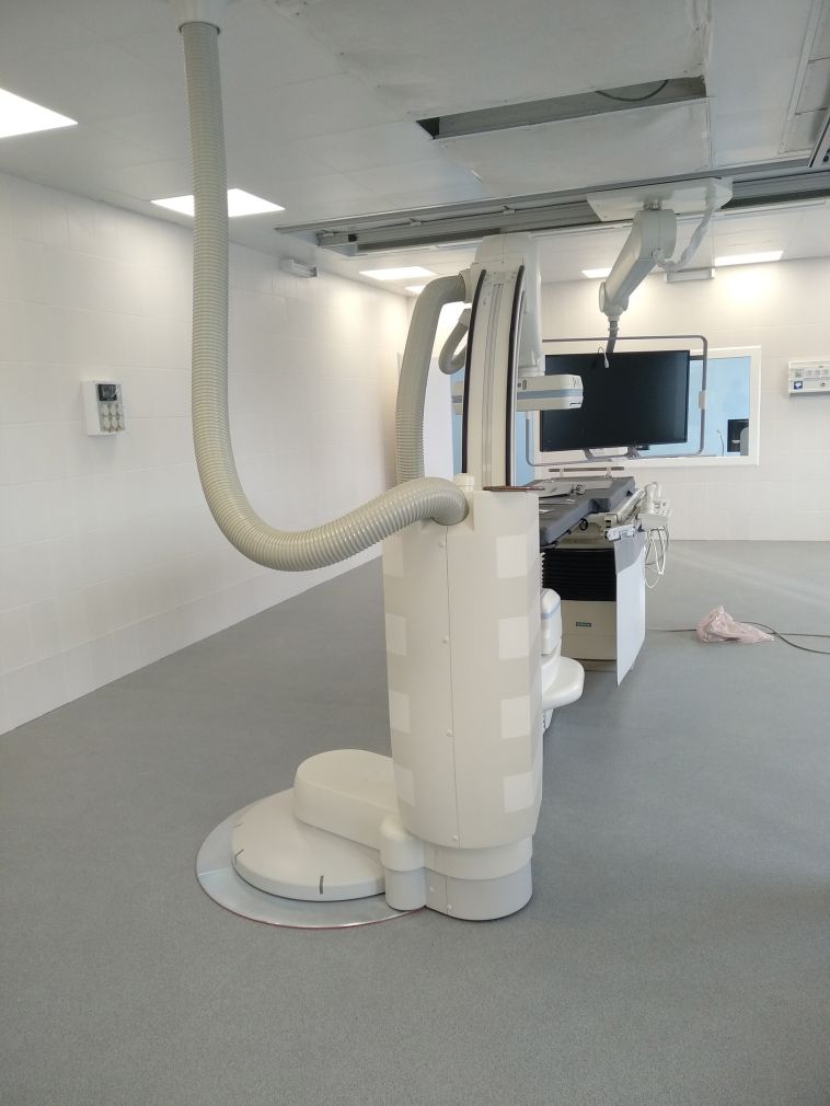 На данный момент полностью готово правое крыло отделения, где располагаются кабинеты медицинского персонала, кабинет УЗИ и операционный блок. Операционный блок совмещает в себе два операционных зала для проведения открытых и эндоваскулярных вмешательств. Этот принцип носит название гибридной операционной. Первая в своём роде в Челябинской области, она оснащена ангиографической системой Artis zee floor, изготовленной компанией Siemens Healthineers в Германии специально для Медсанчасти. А приобретена она на финансовые средства ПАО «ММК» в рамках масштабной инвестиционной программы по модернизации АНО «ЦКМСЧ», уже смонтирована и готова к эксплуатации.