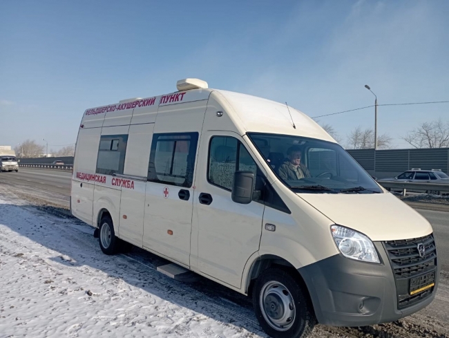 Мобильный комплекс создан на базе «Газели» увеличенной емкости. В нем расположено основное рабочее место врача с возможностью оказания первой помощи, проведения диспансеризации, вакцинации. Это поможет организовать медицинскую помощь в удаленных населенных пунктах с малым населением, где нет стационарных медучреждений.
