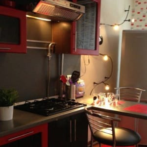+ посуда, холодильник, стиральная машинка-автомат, микроволновая печь, чайник, утюг, фен