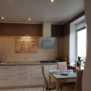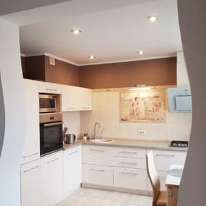 По всей квартире натяжные потолки с точечными диодными светильниками (за электричество плачу в месяц 300р!)