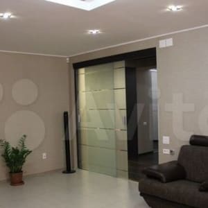 Установлены межкомнатные двери производства Италии. Дверь в зал раздвигающееся стекло (два полотна).